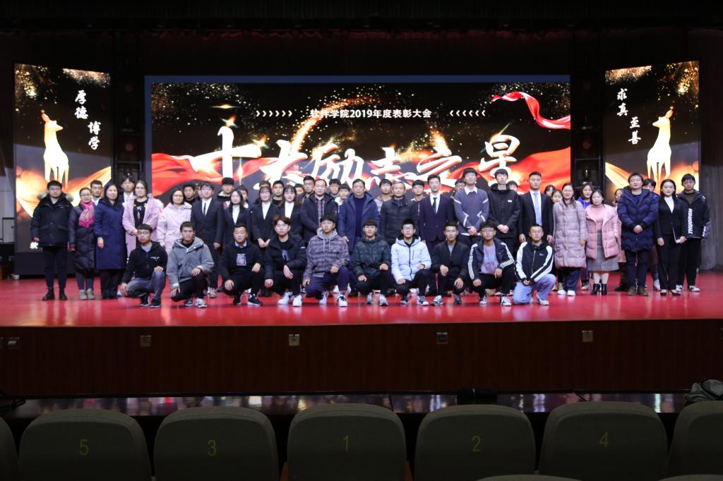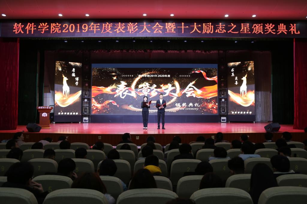 本网讯(特约记者/于誉雯)12月28日晚七点,软件学院2019年度表彰大会暨十大励志之星颁奖典礼在毕业大厅举行。校学生处副处长赵东江、软件学院领导班子、团学办老师以及学生代表700余人出席了本次大会。