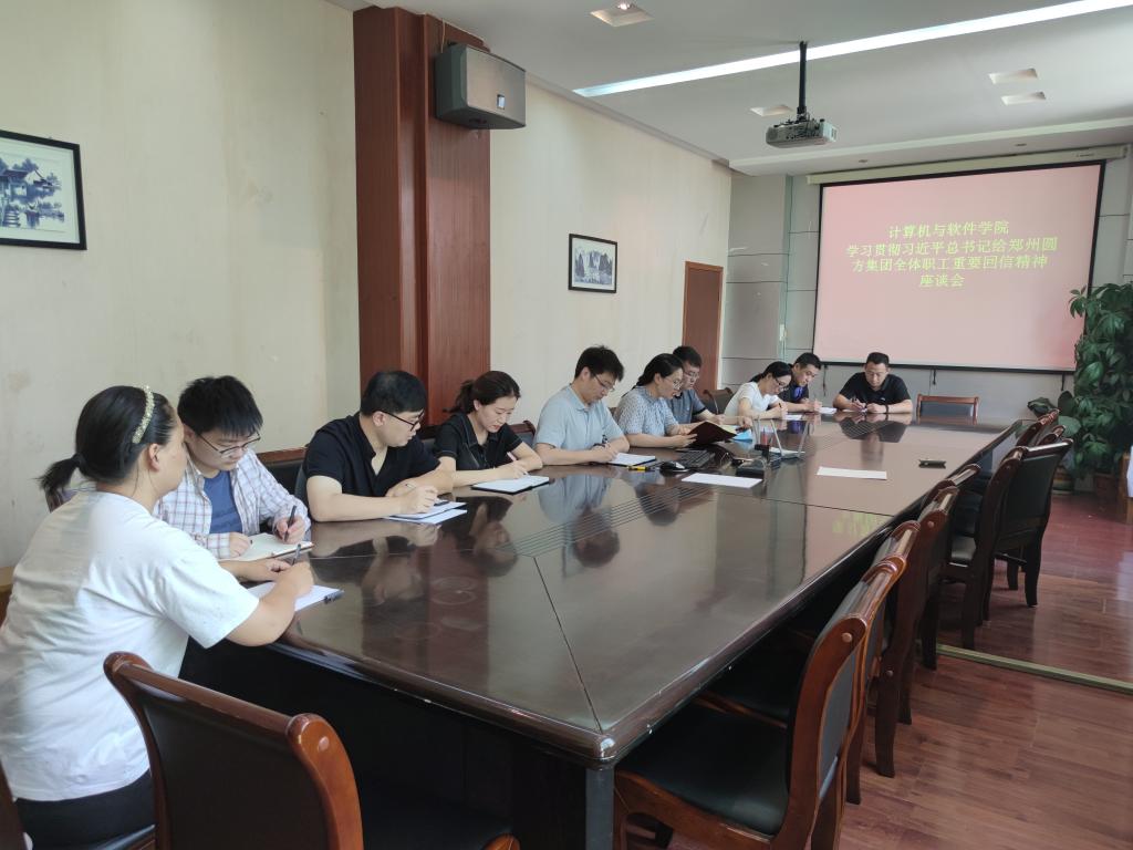 6月5日上午,计算机与软件学院教工第一支部全体党员在计算机与软件学院二楼会议室召开学习研讨会议,集中学习习近平总书记给郑州圆方集团全体职工的重要回信精神。