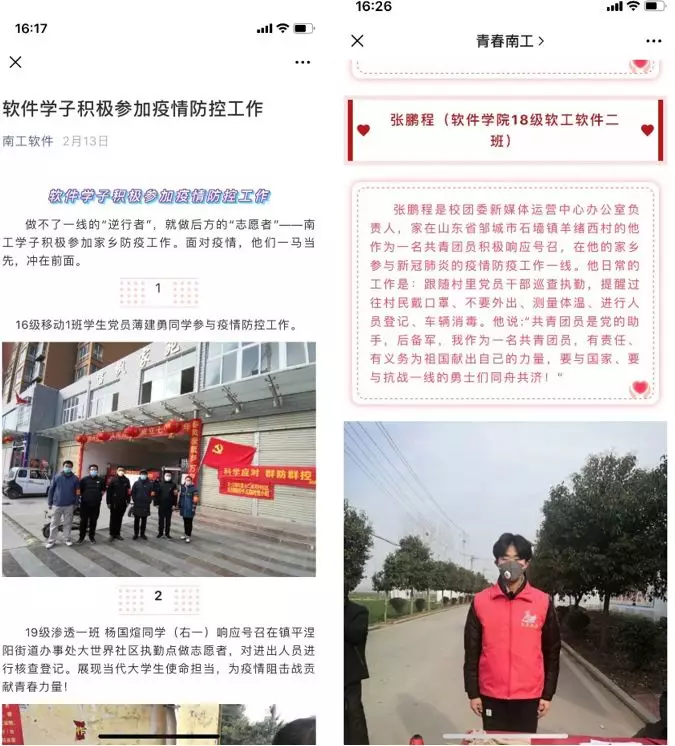 我院学子在抗疫期间也积极参加“疫情过后,我想……”以及“抗击疫情,南工团员青年在行动”的活动。