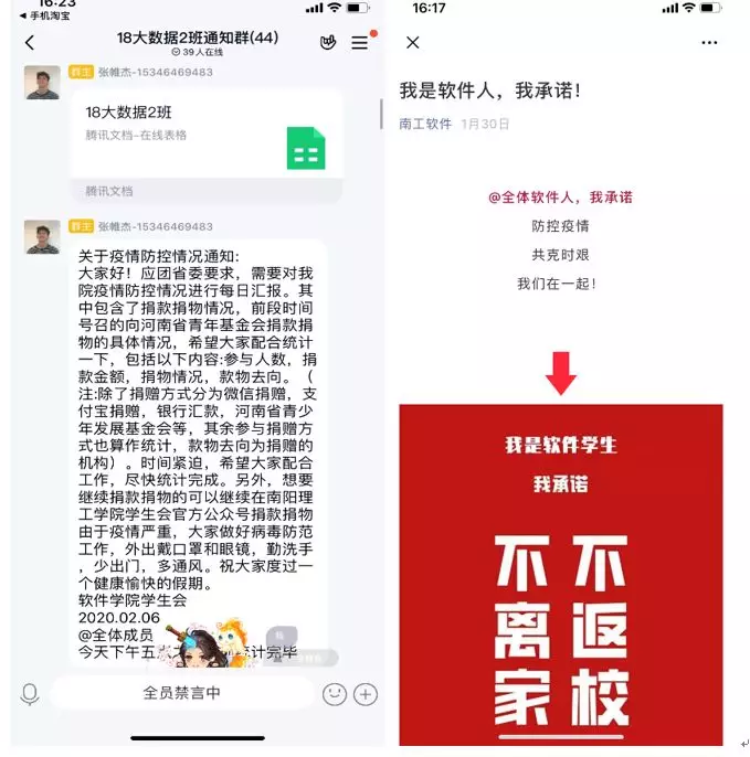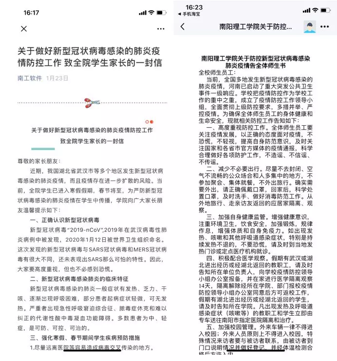 在全国上下拉响疫情警报的时候,软件学院立即发布关于疫情防控致全院家长的一封信以及致全院师生的一封信,通过微信公众号以及qq群进行宣传。