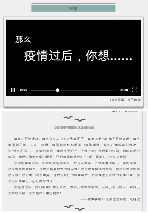 学生通过制作视频、写文章、图片集等方式表达了我们可以最终战胜疫情的积极乐观的心态。