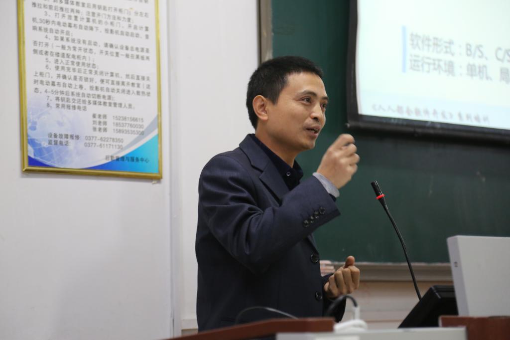 本网讯(学生记者/吴昊)12月16日下午4点,北京鸿翔远成科技有限公司总经理李岗教授在南阳理工学院14教102室开展了关于软件开发思维与软件开发前景的学术报告会。软件学院两百余名学生到场参加。