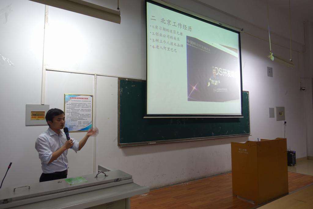 5月4日晚7点,在14号教学楼106教室内,软件学院举办的“张衡科技大讲堂”第一讲如期开讲。本次特邀了软件学院2010级移动设备应用开发专业毕业生陈宜龙为软件学院学子分享了他就职阿里巴巴的经历。陈宜龙给学弟学妹畅谈了自己北京工作经历,走过实习期的迷茫无措到阿里巴巴的快速成长,让他深深感受到企业文化,专业技术对个人发展的影响。针对即将毕业的大三、大四学生他还为学弟学妹分享面试技巧和注意事项。为大家进行了合理的职业规划建议。最后,陈宜龙就当前移动开发的前沿趋势与同学们进行交流。