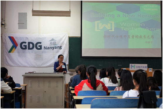 2018年4月21日(周六)下午4点,一年一度的谷歌女性开发者大会强势登陆南阳理工学院。本次活动的主题为Building a New Horizon,会议邀请了七位互联网时代下的优秀女性嘉宾,与大家分享她们的经验。南阳理工学院软件学院副院长张晓民教授到场并致辞。
