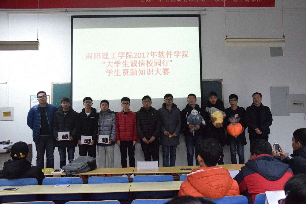 本网讯(学生记者/胡欣茹)12月15号下午2点,南阳理工学院2017年软件学院“大学生诚信校园行”学生资助知识大赛在14教104成功举办。本次大赛由软件学院学生会主办,近百名学生到场参加。