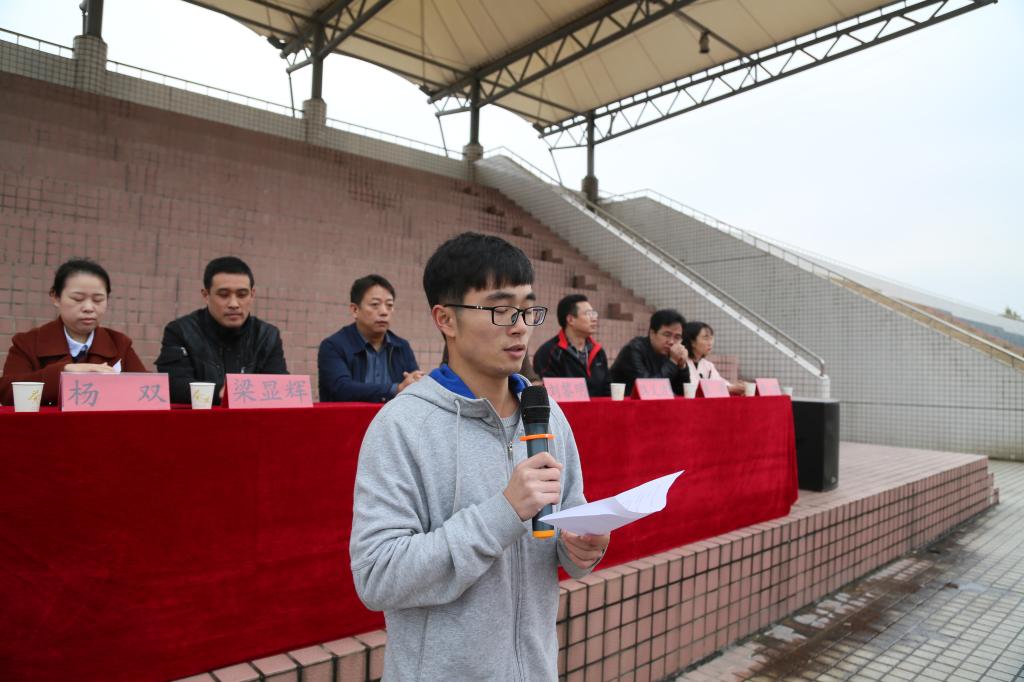 活动在激昂的国歌中拉开帷幕,软件学院党委书记牛军科书记致开幕词,牛书记指出这次活动的宗旨和精神,并表达了对参赛运动员的美好祝愿。接着裁判员代表马乾光和运动员代表高迈分别进行宣誓,从他们的誓词中可以看出此次比赛的公平公正公开以及运动员们对此次比赛的全力以赴。最后,由软件学院院长刘黎明刘院长宣布“南阳理工学院软件学院第八届秋季田径运动会正式开始”。