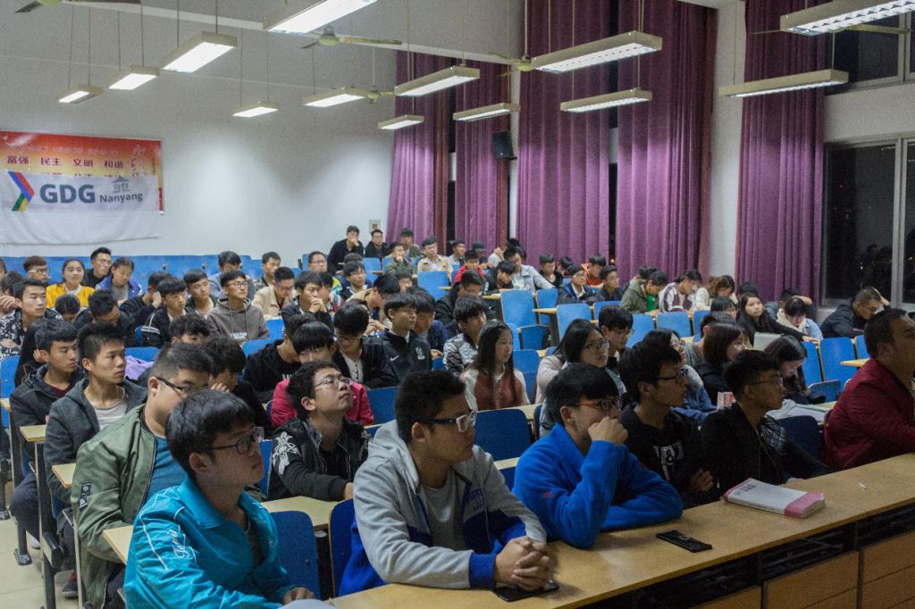 2017年11月5日晚八点,以“大数据技术,引领未来发展”为主题的2017级软件学院新生谷歌开发者社区(GDG)大数据专题讲座于14教302举行。软件学院教师、南阳GDG负责人陈可带领相关技术人员为大一新生讲解大数据技术。