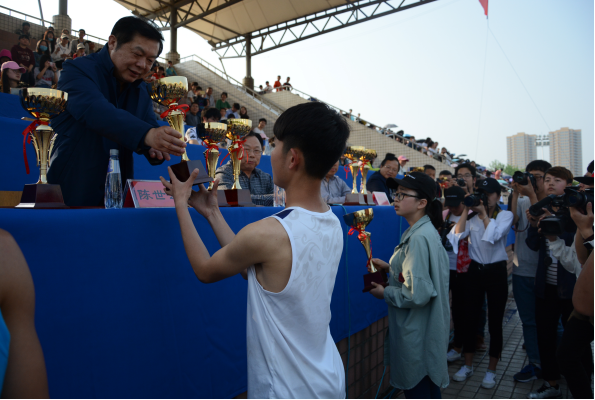 本网讯(学生记者/李筱晗)4月15日下午,南阳理工学院第二十四届田径运动会闭幕式在东南校区操场举行,党委副书记郭建生、副书记秦鹏鸣、副校长陈世云、副校长张世海、工会主席周礼春出席大会。全校大一学生前来观看。