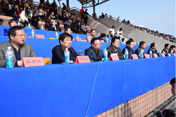 本网讯(学生记者/李筱晗)4月13日,第二十四届田径运动会开幕式在东南校区操场举行,党委副书记郭建生、副书记秦鹏鸣、副校长陈世云、副校长张世海、工会主席周礼春出席大会,田径运动会全体成员参加,全校大一学生前来观看。