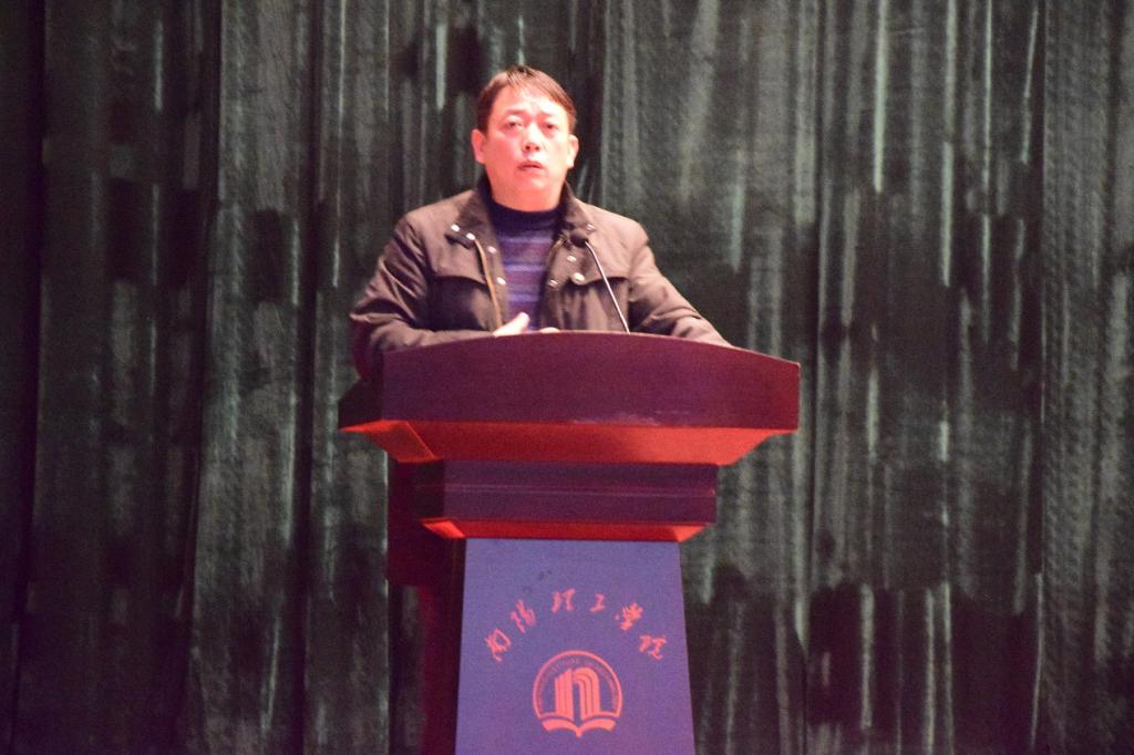 表彰结束,优秀班级助理乔创发表感言。他说,担任老师助理期间,他感受到负责的重要性,工作虽苦,却很快乐。新生C语言培训代表倪乾栋发言说,新生培训的两个月中,他看到学弟学妹一点点成长,很自豪。优秀代表们的宝贵经验化作如春雨,毫无保留分享给每位同学。大会临近结束,党委书记牛军科作总结发言,他首先肯定我院在明德修身活动中取得的成绩。其次,他指出了同学们的不足,呼吁同学们走出宿舍,放下手机,在描绘美好青春的同时,提高专业素养。