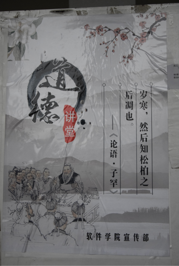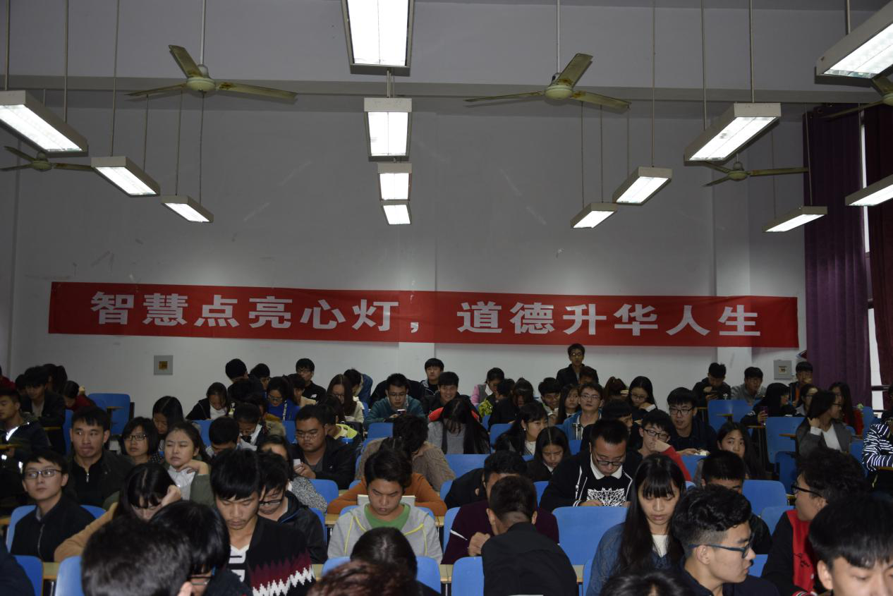 本网讯(学生记者\付宇航)10月28日,“道德讲堂”活动于14号楼104教室顺利举办。软件学院党委副书记祝孔涛,15级辅导员杨双,软件学院学生参加此次活动。