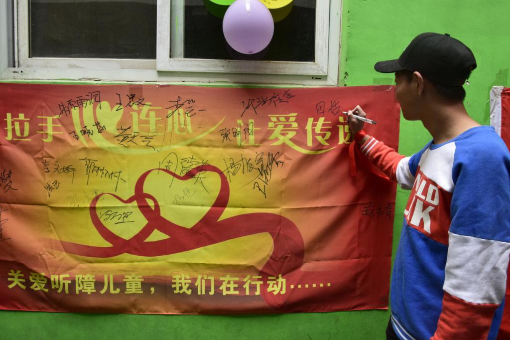 据聋康学校的苗院长介绍学校里共有30多名先天性听障的孩子,学校里很多老师都是南阳义工协会的志愿者,经常有爱心企业和爱心人士为孩子们奉献爱心,南阳理工软件学院的师生也是这里的常客。再过两天5月15日是第二十六个法定“全国助残日”,本次助残日的活动主题是“关爱孤残儿童 让爱洒满人间”。倡导关爱残疾儿童,从我做起,从点滴做起。关爱他们,帮助他们,通过活动用真情和爱心为孩子们撑起一片蔚蓝的天空。