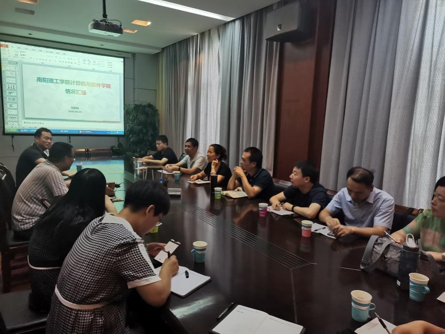 院长刘黎明对平顶山学院计算机学院(软件学院)一行来访表示热烈欢迎,并从学科建设、专业建设思路、教学过程管理的信息化建设、学生社团管理等方面详细的介绍了我院情况。双方就培养方案制定,线上教学和学科竞赛展开深入探讨。吕海莲院长对我院在专业建设和社团管理等方面给与高度评价。