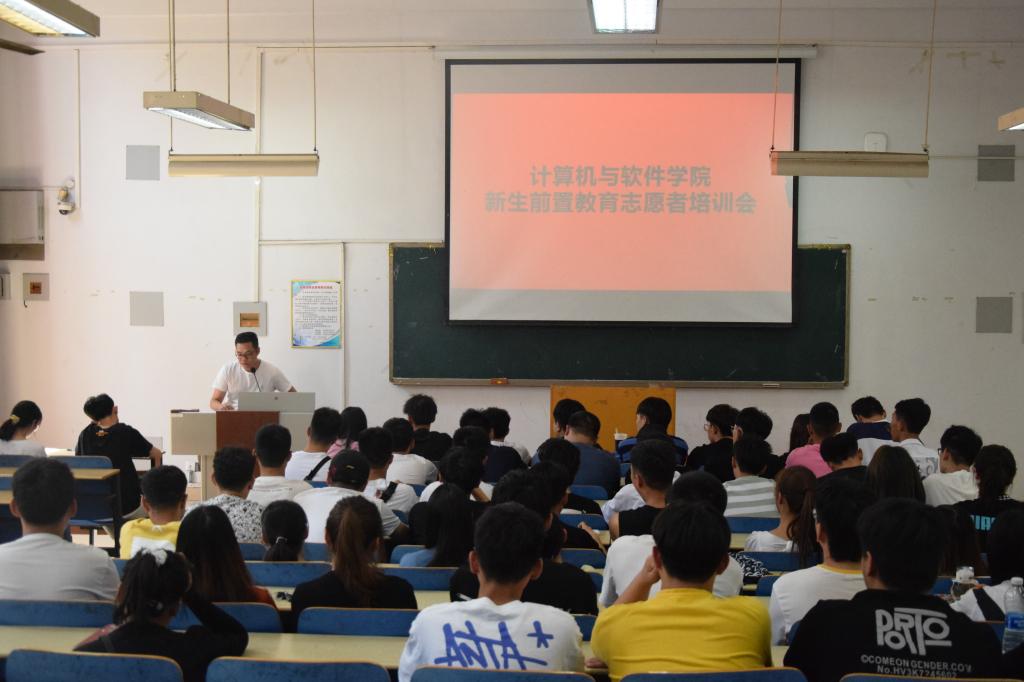 本网讯(特约记者/曾智 学生记者/吴昊)9月4日下午,计算机与软件学院2020级新生前置教育志愿者培训会在14号教学楼106教室举行。计算机与软件学院团学办主任孙文平、创新创业就业指导中心副主任陈可出席本次会议,80余名志愿者即班级助理导师到场参会。