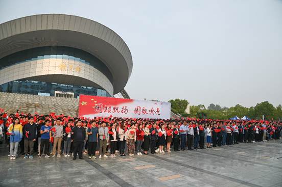 活动最后,全体师生高举红旗共唱《歌唱祖国》,以青春之名向祖国告白,表达对祖国的赞美和热爱。