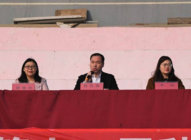 计算机与软件学院党委书记祝孔涛致开幕辞,他首先对运动会的举办表示热烈的祝贺,号召同学们“放下手机、走出宿舍、奔向操场” 在运动中培养意志力和合作能力。他要求全体运动员奋力拼搏,赛出风格,赛出水平;全体裁判员恪尽职守,公正裁决;全体工作人员忠于职守,保障安全。把运动会办成健康、文明、安全的大会。