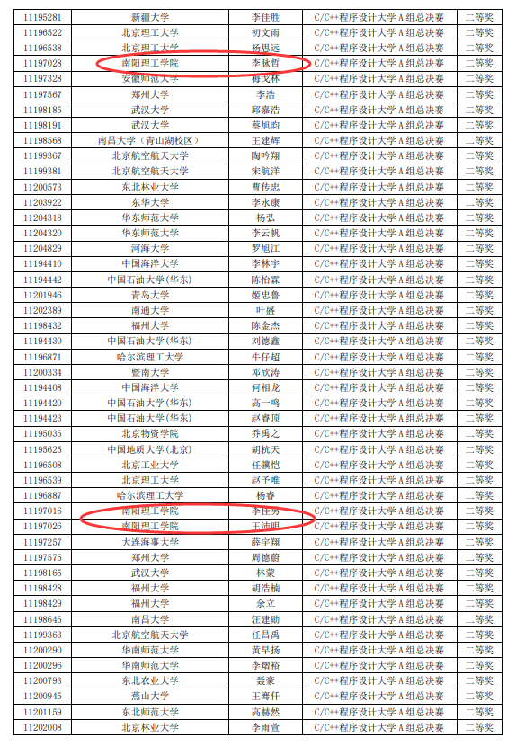 本网讯(特约记者/陈可)11月14日,第十一届“蓝桥杯”全国软件和信息技术专业人才大赛全国总决赛举行,来自北京大学、清华大学、武汉大学、西安交通大学、北京航空航天大学、北京理工大学、四川大学、电子科技大学、吉林大学等高校在内的800余所高校的选手参赛,我校作为此项竞赛的赛点,由计算机与软件学院、信息工程学院、数字媒体与艺术设计学院的33名队员,代表我校参与争夺“蓝桥杯”全国总决赛的桂冠。经过4个小时的艰苦鏖战后,计算机与软件学院学子在C/C++程序设计A组中获得二等奖奖5项、三等奖2项,C/C++程序设计B组中获得一等奖2项,二等奖8项,三等奖2项,Java程序设计B组中获得一等奖1项,二等奖1项,三等奖1项。信息工程学院学子在C/C++程序设计B组中获得一等奖奖1项,Java程序设计B组中获得一等奖1项,三等奖1项。数字媒体与艺术设计学院学子在Python程序设计中获得三等奖1项。同时,由于我校出色的竞赛组织工作,荣膺第十一届“蓝桥杯”全国软件和信息技术专业人才大赛全国总决赛软件类优胜学校及优秀组织单位荣誉称号。