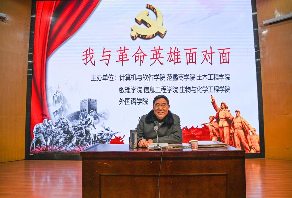 杨东发1972年入伍,在部队期间曾参加内蒙边防执勤、唐山抗震救灾、中越自卫反击战等重大活动。杨东发为同学们讲述了在“两山轮战”前线,为完成任务在敌人眼皮底下潜伏八天八夜的英雄故事,重点介绍了战友刘庄的英雄事迹。1986年12月9日,刘庄在16号高地执行开辟通路的任务时不幸触雷,造成高位截肢,但他仍然顽强不屈地与病痛做斗争,被誉为“钢铁战士”。