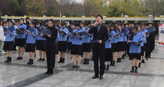 随后,计算机与软件学院党委书记祝孔涛带领全体师生宣誓:“铭记历史、勿忘国耻;从我做起、努力学习,求真学问、练真本领,知行合一、报效祖国;为实现中华民族伟大复兴的中国梦而努力奋斗!”铮铮誓词,表达了同学们对国家的热爱与坚定。
