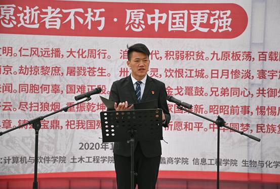 本网讯(特约记者/曾智 学生记者/郝苗苗)2020年12月13日,是第七个南京大屠杀死难者国家公祭日。为深切缅怀遇难同胞,唤起善良人们对和平的向往和珍视,我校在齐贤广场举行国家公祭日纪念活动。校党委副书记、工会主席张伟、党委学生工作部部长、学生处处长路瑞峰以及各教学院书记和师生代表1500余人出席本次活动。活动由计算机与软件学院党委书记祝孔涛主持。