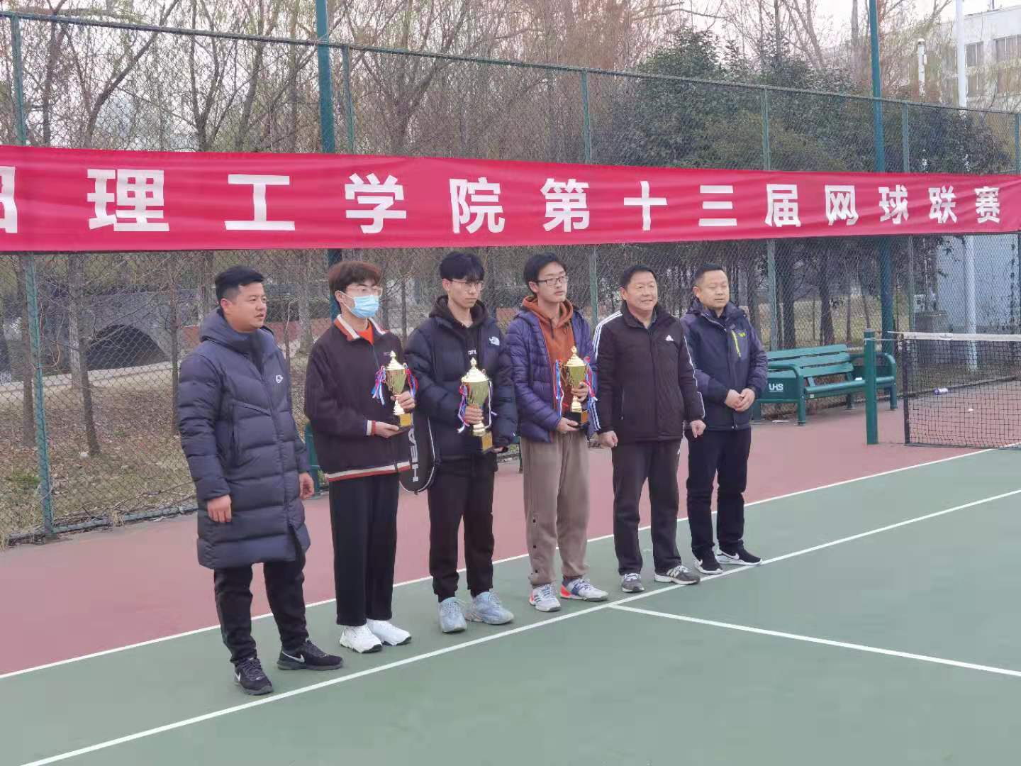 为期两天的比赛中选手们热情高涨,以网球为桥梁,切磋球技。赛场上,他们斗志昂扬,奋尽全力。经过两天的激烈角逐,最终我院学子获得男子团体一等奖的好成绩,其中李金一获得男子单打冠军。我校体育教学部主任顾长海、办公室主任赖超、POP网球俱乐部指导老师万大苇为我院颁奖。