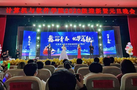 本网讯(学生记者/崔建明 王豪)12月27日晚,计算机与软件学院在毕业大厅举办“舞动青春•执梦远航”2020级迎新暨元旦晚会。我校党委学生工作部部长、学生处处长路瑞峰、计算机与软件学院院长刘黎明、院党委书记祝孔涛、副院长张凌晓以及团学办全体老师出席本次活动。