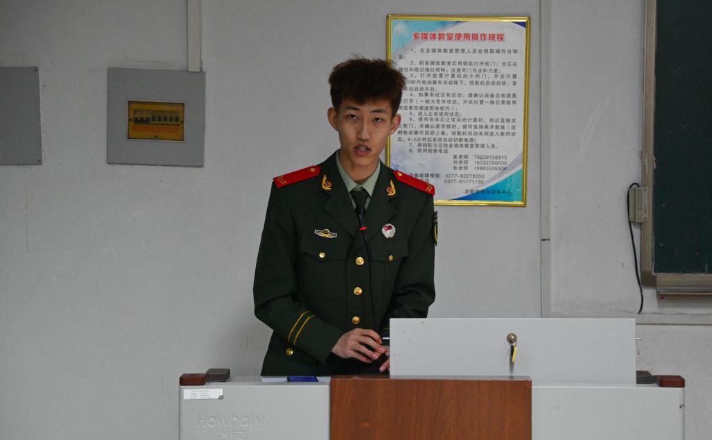 本次宣讲会特邀请我校大学生退役军人协会的三位优秀退役军人为广大学生分享军队生活,讲解征兵政策。杨炎凯同学讲述自己亲历军队高原生活的感受,通过真实的故事让同学们了解什么是“高原”,什么是军人的无私奉献和铁血担当,现场爆发出热烈掌声。来自生化学院的李祥玉分享了自己第一次拿枪的感受。在和现场同学的互动中,他亲自为想要当兵的同学穿上军装,感受军人的荣光,燃起众多同学的参军梦。最后,来自我院的退役军人刘思博向同学们讲解了自己的军营生活和各项参军优待政策。