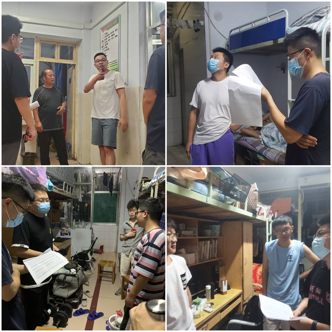 本网讯(特约记者/曾智)为进一步落实我校关于疫情防控的最新指示精神,充分做好假期疫情防控工作和留校学生关心关爱、服务保障工作。8月2日晚,我院党委副书记申玮、团学办主任孙文平、副主任陈旭、创新创业就业指导中心副主任陈可及各辅导员深入学生宿舍,看望慰问留校学生。