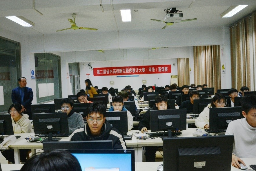 本网讯(特约记者/陈可)为进一步提升我校大学生计算机程序设计能力,培养大学生对程序设计的兴趣,营造良好学风氛围,增强大学生创新能力,近日,计算机与软件学院在15号教学举办第二届省内高校新生程序设计大赛(网络)邀请赛校内初赛,共计来自校内5个院系的971名大一新生参加了本次校内选拔。本次初赛共计使用机房26间,现场工作人员60名,全部来自计算机与软件学院大学生科技园社团。经过近三个小时的选拔,将产生排名前200的同学,参加下一阶段举行的全省总决赛,届时将和省内近20所高校的500名大一新生同台竞技,角逐冠亚季军。这是计算机与软件学院承办的第二届省内高校新生程序设计大赛,通过大赛选拔和培养了一批程序设计方向的优秀学子,为我校学科竞赛整体实力的提升,储备了力量。