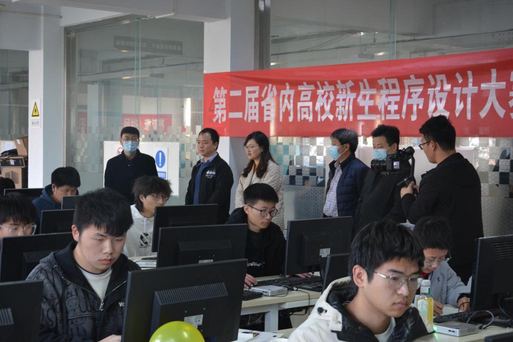 此次大赛面向省内开设有计算机程序设计课程的各高校2021级新生,旨在激发同学们对于程序设计的热情,进一步提升在校大学生计算机程序设计能力,大赛经过预赛筛选,最终共有344名学生进入决赛。下午三点,比赛准时开始,校党委副书记、工会主席张伟教授带领学生处相关老师亲临比赛现场观摩。张书记希望同学们能够通过这次比赛拓展自身能力,开扩视野。