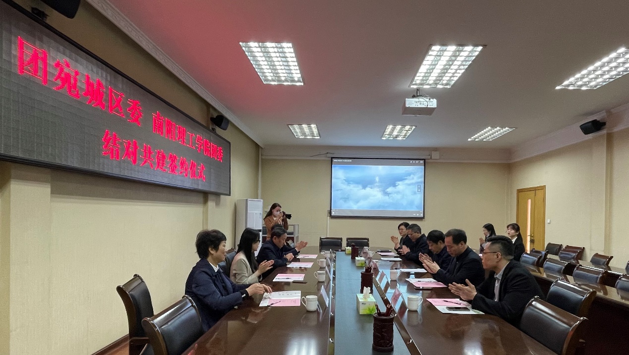 肖泽昌对长期以来关心支持南阳理工学院建设和发展的共青团南阳市委、宛城区委、区政府、区政协以及团区委表示诚挚的感谢。他指出,此次与团宛城区委签署结对共建协议,是我校与宛城区合作向共青团领域纵深发展的重要举措,开启了与团宛城区委合作共建的新篇章,学校将发挥专业人才优势,围绕科技创新、人才培养、社会实践、志愿服务等方面深入合作,不断提升共青团组织力、引领力、服务力,把创新理念、智慧成果、优秀人才推向宛城、融入宛城,为宛城区经济社会发展贡献才智,为南阳建设河南省副中心城市贡献南工力量。