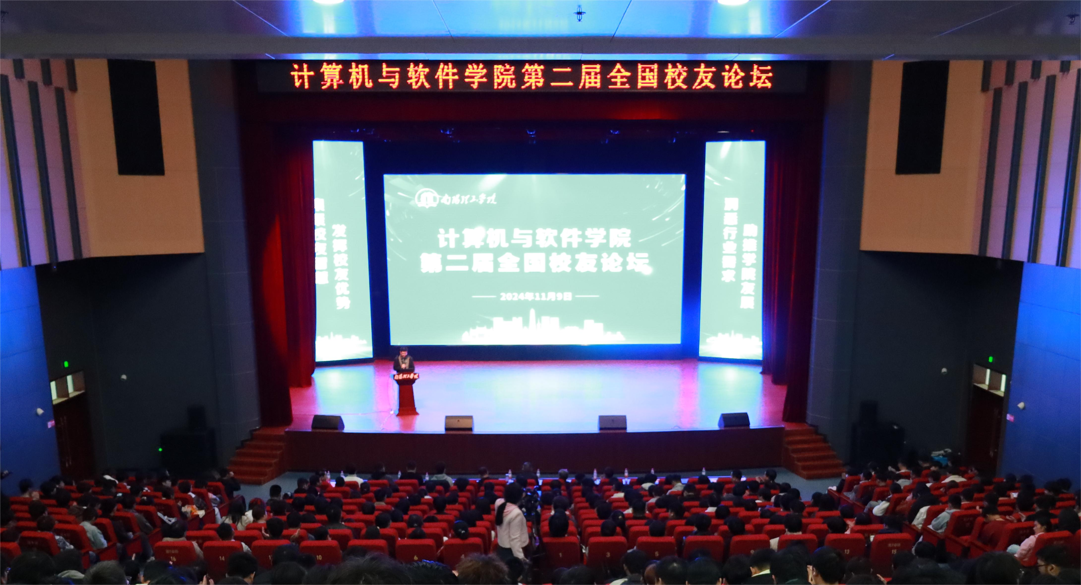本网讯(学生记者/张俊男)11月9日,计算机与软件学院第二届全国校友论坛在东校区音乐厅成功举办,招生就业处处长祝孔涛、学院领导班子、全体辅导员及2024级学生参加论坛。