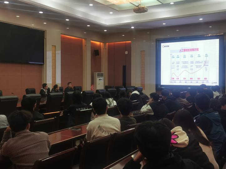 会上,李鲲总经理发表了热情洋溢的致辞,并对泰德网聚公司进行了详细介绍,同时向校企合作班的学生们表达了殷切的期望。随后,郭智、李海洋、张良三位负责人分别就人工智能应用、工业数字化应用和产品规划研究三个方向,与同学们进行了深入的交流与分享,涵盖了这些领域的发展历程、学习内容以及当前的人才市场需求等信息。