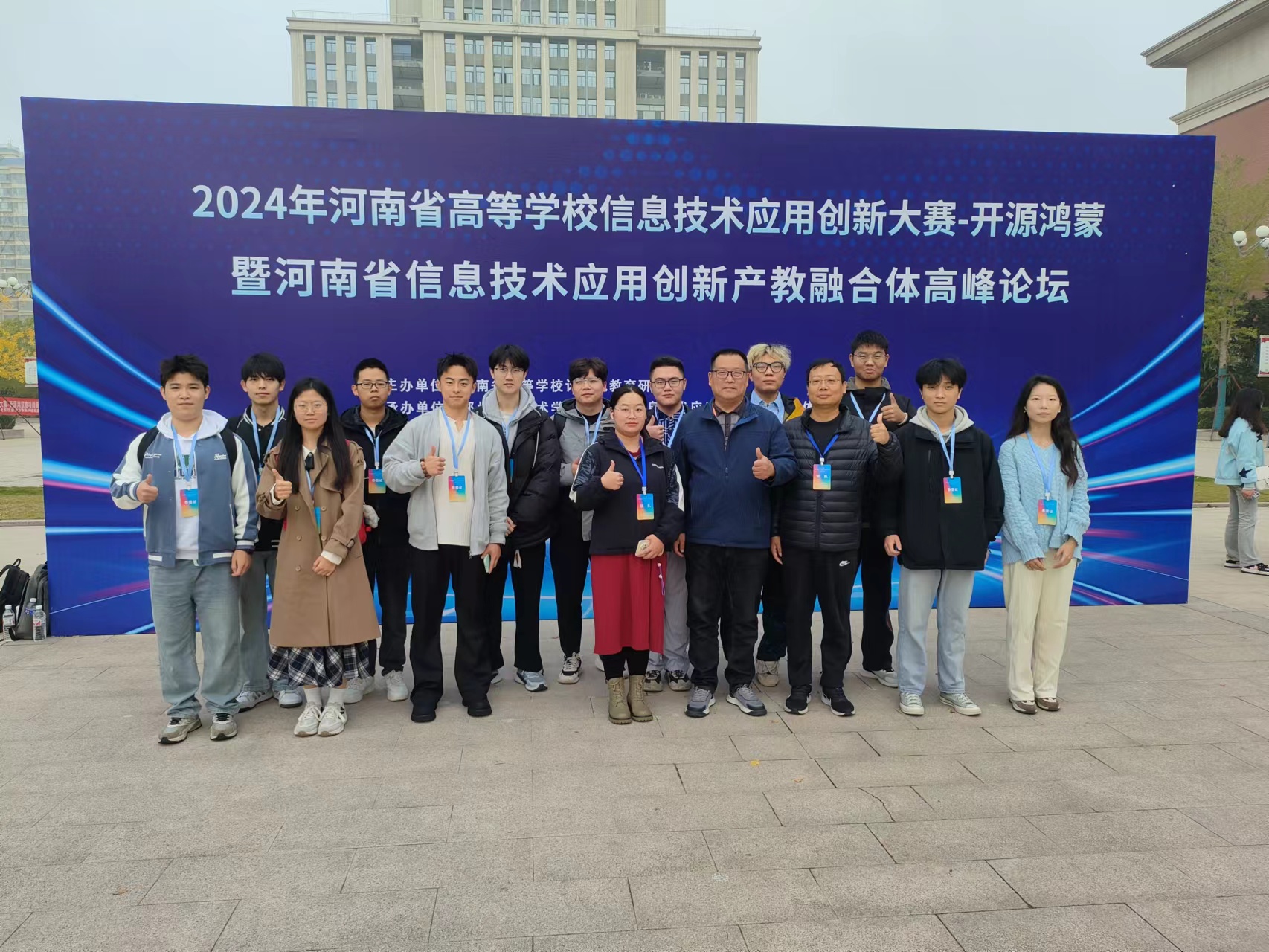 本网讯(特约记者/胡沛)11月15日-17日,2024年河南省高等学校信息技术应用创新大赛(开源鸿蒙)在郑州工程技术学院成功举办,来自省内郑州大学、河南大学等近152个团队的456名同学参加本次比赛。经过初赛选拔,来自我校计算机与软件学院的五支参赛队代表学校参加了本次比赛,并获得一等奖一项,二等奖两项,三等奖两项的佳绩,五支参赛队伍全部获奖。