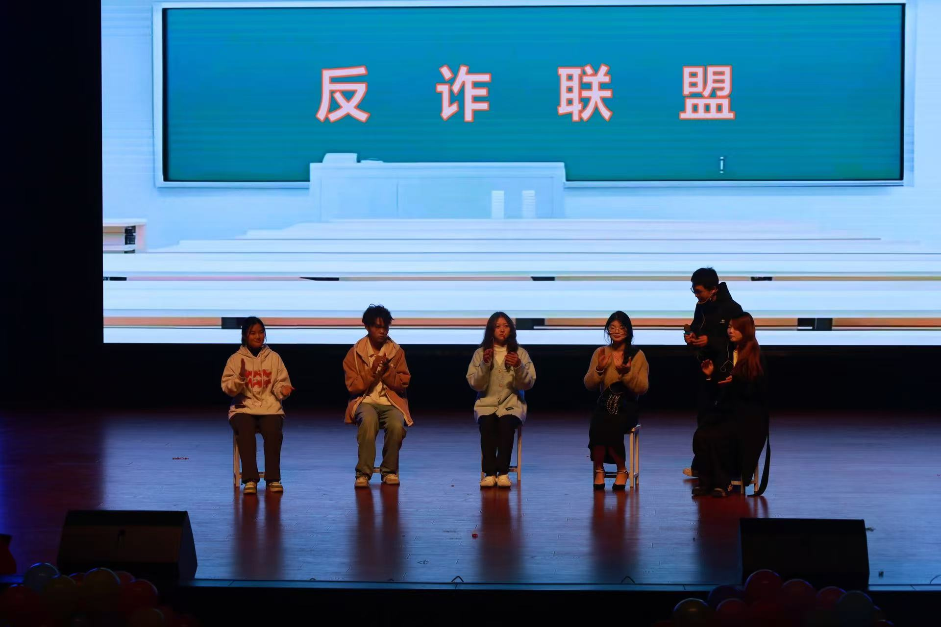 话剧《反诈联盟》以其贴近生活的题材和幽默风趣的表演风格,成为了当晚的一大亮点。该剧通过讲述诈骗分子的各种套路,向新生们传递了防范电信诈骗的重要性,增强了他们的安全意识和自我保护能力。演员们精湛的演技和默契的配合,让这部话剧充满了趣味性和教育意义,赢得了观众们的广泛好评。