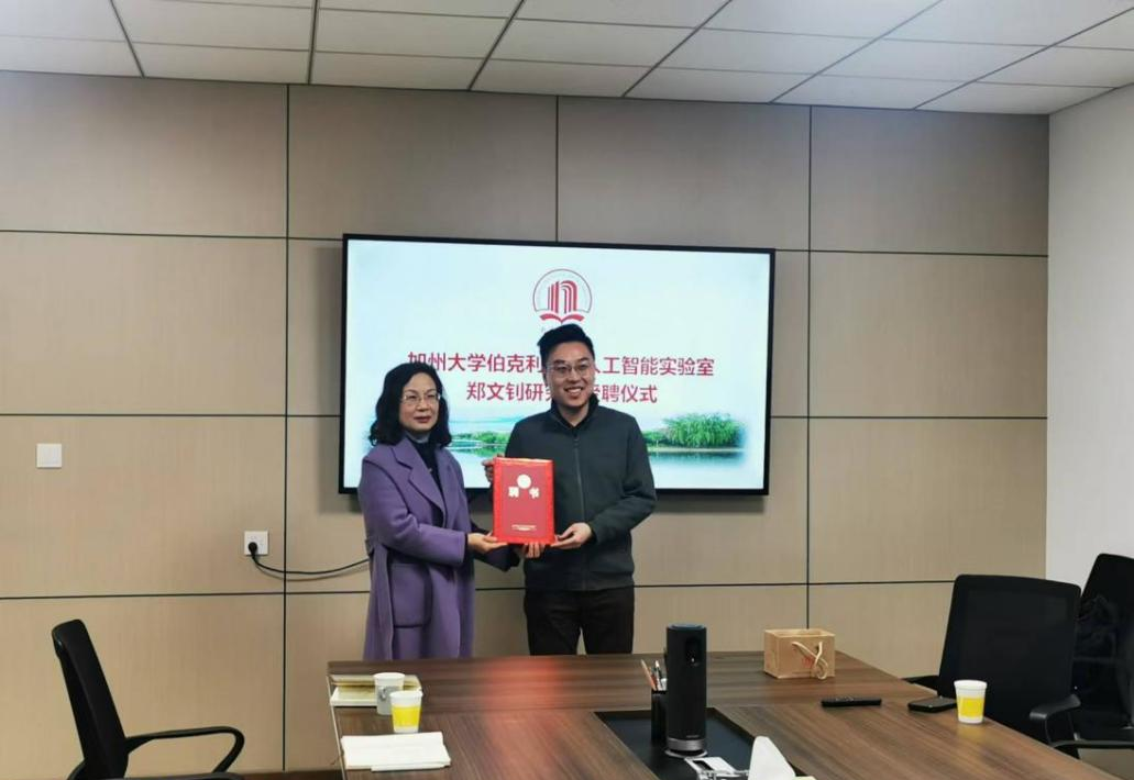 聘任仪式上,校党委副书记张爱红为郑文钊博士颁发了聘任证书。她高度赞扬了郑文钊研究员在学术研究上的深厚造诣和对人工智能领域的杰出贡献,并表示学校的未来发展离不开高层次人才的支撑。她希望郑文钊研究员能够充分发挥自己的专业优势,引领和带动我校人工智能学科的创新发展,共同开创学校科研工作的新局面。