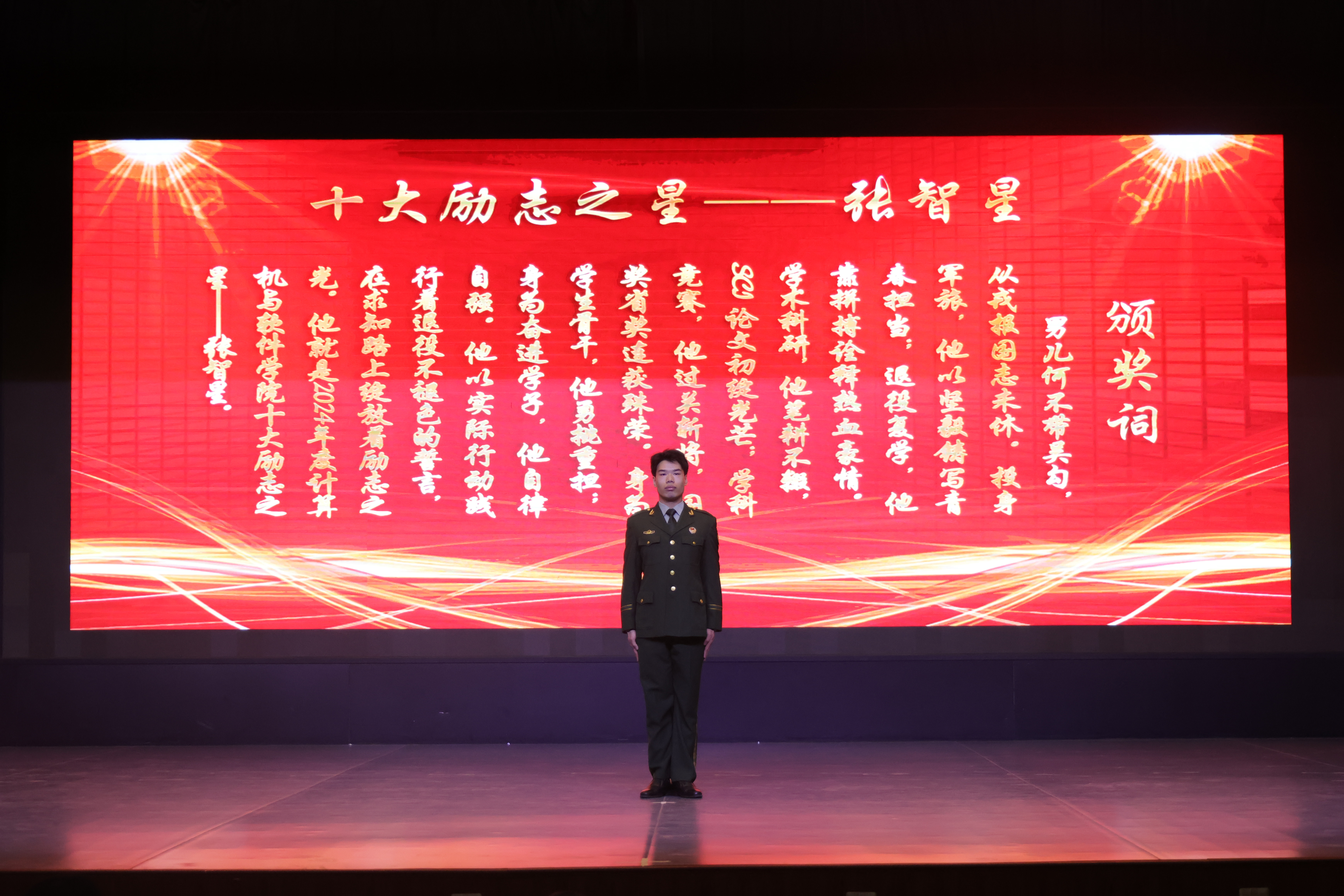 “十大励志之星”颁奖环节,张智星、裴权、李晨旭、王凯斌、张蕾蕾、宋雨静、徐粤浩、赵晨希、袁梦、孟新霞十位同学凭借坚韧的意志、突出的成绩和感人事迹获此殊荣。退役复学的张智星同学以“退役不褪色”的信念,在学术科研与竞赛中屡创佳绩,他与宋雨静作为获奖代表分别发表感言,分享奋斗历程,号召全体同学“无畏向前,追逐梦想”。