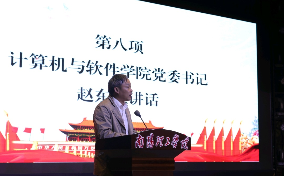 学院党委书记赵东江表示,表彰大会的仪式感,是学院选树身边榜样的具体表现,也是南工精神的生动表现。学习榜样不是简单的模仿,而是要将精神内核转化为行动自觉,他向同学们提出三点希望:一是做信念坚定的追光者。将个人理想融入国家战略,顺势而为成就自己,才能更好的服务集体;二是做知行合一的实干家。抓好课堂学习这一根本,积极投身课外实践;三是做破浪前行的创新者。当前人工智能、机器人等领域异常火爆,作为计算机专业学生,要结合不同领域思考如何创新。