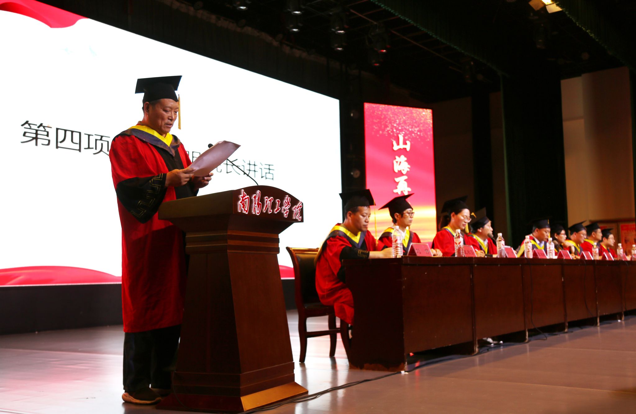 学院院长刘黎明在致辞中祝贺同学们圆满毕业,他向同学们提出几点希望:一是以理想为帆,做时代的追光者。将个人理想融入国家发展的宏大叙事;二是以豁达为舟,做人生的摆渡人。以豁达胸襟笑对得失,以坚韧意志跨越沟壑;三是以实干为桨,做创新的拓荒者。立足本职岗位追求卓越,永葆学习与思考的热忱;四是以勤学为舵,做终身的远航者。始终保持“活到老学到老”的心态,把每一次技术变革当作成长的契机。