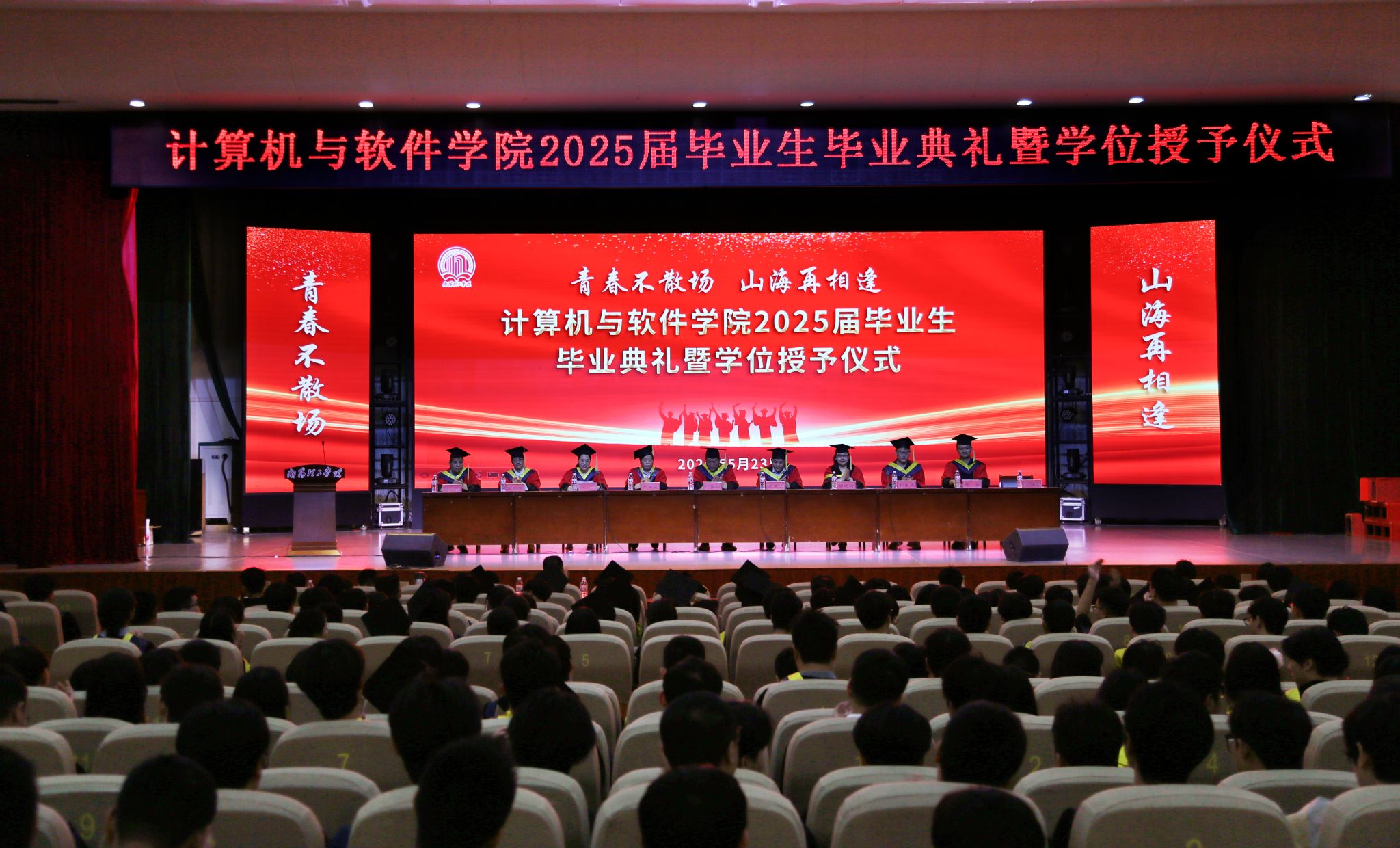 本网讯(学生记者/刘顺博)5月23日上午,计算机与软件学院2025届毕业典礼暨学位授予仪式在毕业大厅举行。计算机与软件学院领导班子、毕业班辅导员及近600名毕业生参加典礼。