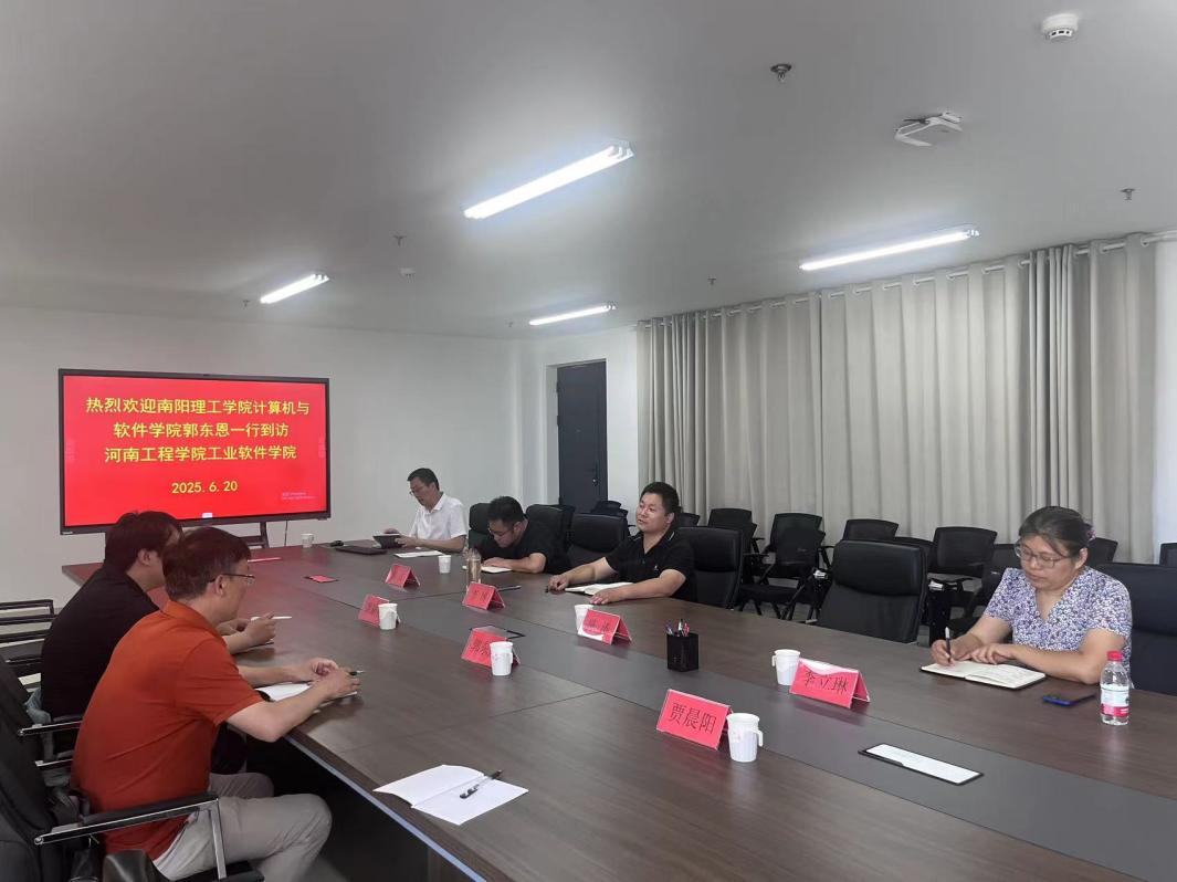 随后的座谈会上,双方围绕工业软件学科发展的核心议题进行了深入探讨。李博副院长进一步介绍了河南工程学院工业软件学院在专业设置、人才培养体系构建、特色课程开发、科研平台搭建以及学生就业导向等方面的具体做法与成效。郭东恩副院长和龚嗣良主任则分享了南阳理工学院工业软件相关专业在建设思路、发展现状、课程体系以及实践教学等方面的探索与实践经验。座谈会气氛热烈融洽,双方就建立长期稳定的合作机制、推动资源共享平台建设、共建实习实训基地、深化产学研协同创新等共同关心的问题展开了务实且富有建设性的交流,达成了多项合作共识。