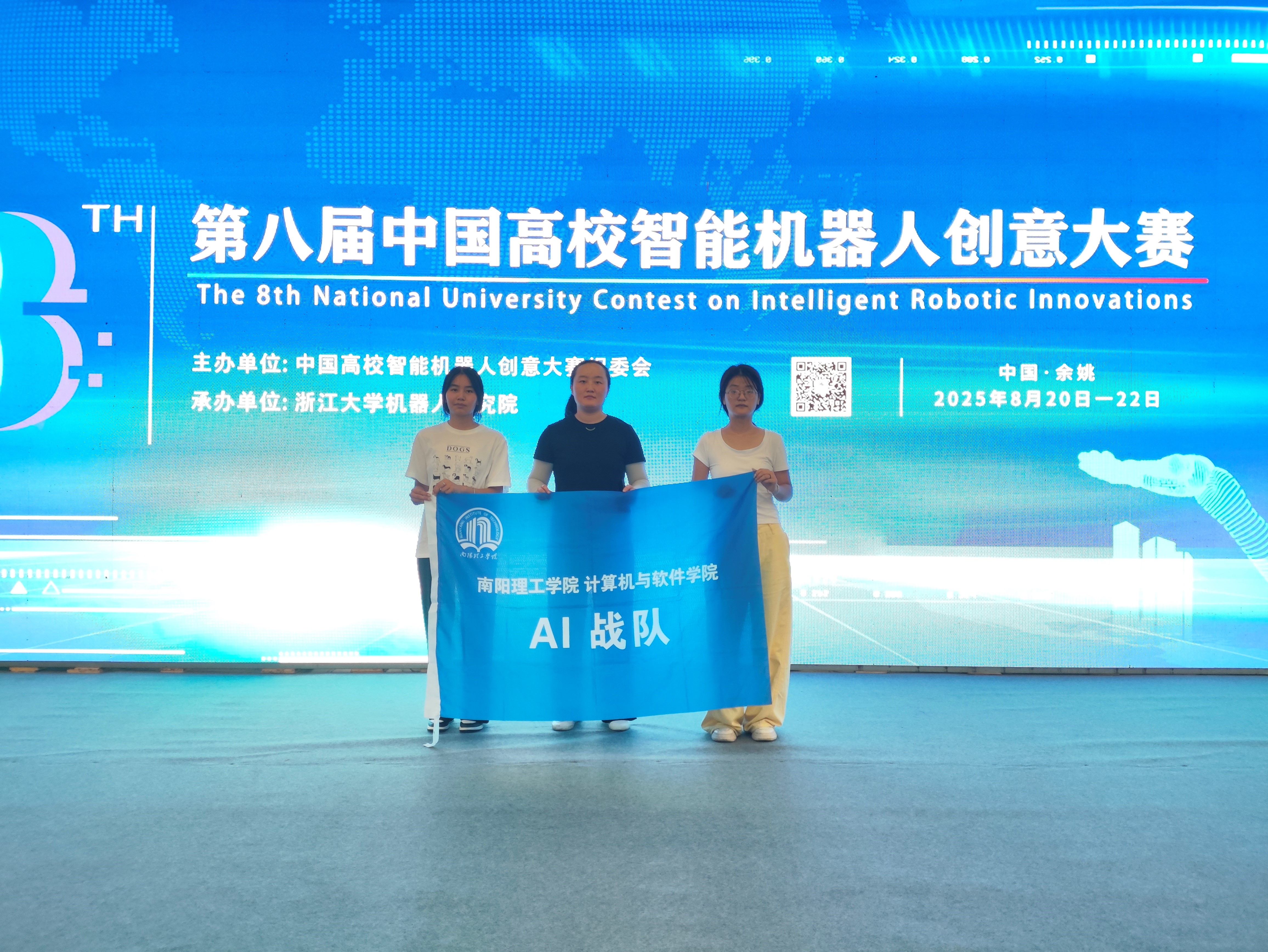 本网讯(特约记者/贾子琪&刘伟)2025年8月20日-23日,由中国高校智能机器人创意大赛组委会主办,浙江省余姚市人民政府和浙江大学机器人研究院承办的第八届中国高校智能机器人创意大赛全国总决赛圆满落幕。我校计算机与软件学院杨婷欣、杨蕊、王晨晨、吕悦佳组成的参赛团队凭借扎实的技术功底与创新的作品设计,荣获大赛三等奖。