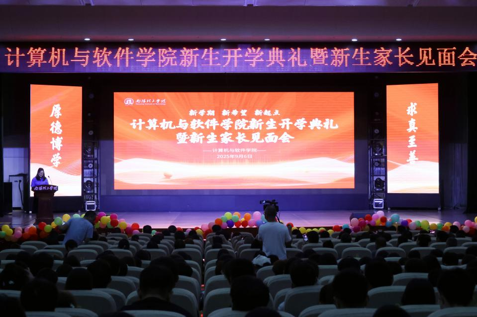 本网讯(特约记者/闫恒瑜)9月6日晚,计算机与软件学院2025级新生开学典礼暨新生家长见面会在毕业大厅举行,第二学术报告厅、第三学术报告厅以及哔哩哔哩网络平台同步直播,计算机与软件学院领导班子、新生辅导员及1058名新生和200余名学生家长参加此次大会。