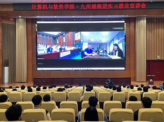 本网讯(特约记者/曾智学生记者/闫丰)为贯彻落实党中央、国务院关于高校毕业生就业工作的决策部署,5月13日晚,计算机与软件学院在第三报告厅举办“书记校长访企拓岗促就业”专项行动九州通线上专场暨九州通集团实习就业线上宣讲会。九州通医药集团物流有限公司总经理张青松、九州通医药集团物流有限公司CTO、湖北九州云智科技有限公司常务副总经理刘定文、湖北九州云智科技有限公司运营部经理程念念、我校副校长肖泽昌、学生处处长路瑞峰、土木工程学院党委书记赵东江,计算机与软件学院领导班子及部分师生代表参加活动。