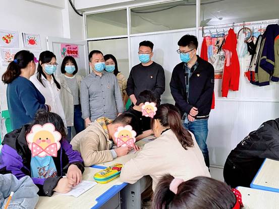 在戴知燕校长的介绍下,党员志愿者们详细了解了孩子们日常康复、学习、生活、成长的相关情况,也体会到了工作人员的不易。这里的孩子大多是患有自闭症的儿童,潜能教育培训学校积极探索自闭症孩子的教育和康复训练方法,帮助他们纠正、规范行为问题,提升自理、生活、学习、集体参与和动手能力。在特教老师耐心的帮助和陪伴下,孩子们有了不同程度的进步,部分孩子可以做些家务劳动,有些可以慢慢学习一些文化课知识,看到孩子们点点滴滴的进步,大家都倍感欣慰。