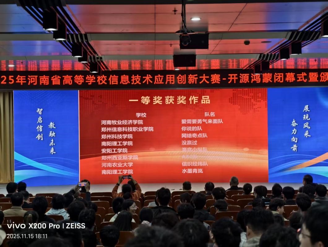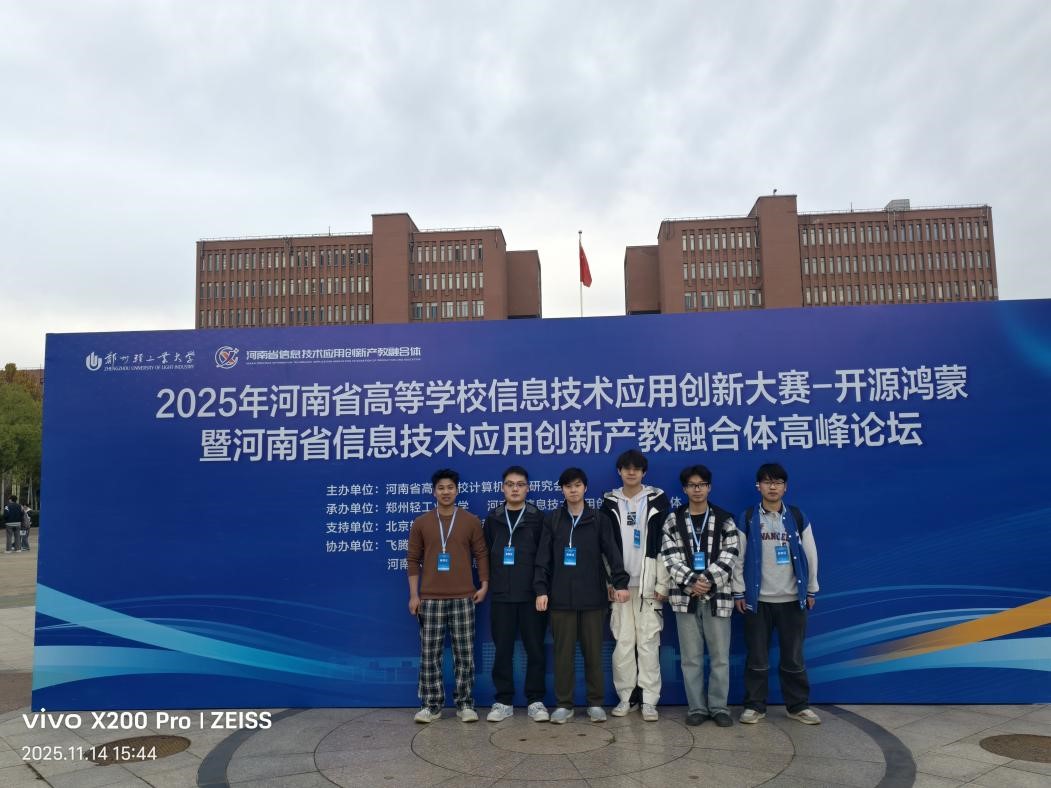本网讯(特约记者/胡沛)11月14日至15日,第二届河南省高等学校信息技术应用创新大赛(开源鸿蒙)在郑州轻工业大学成功举行。在本次大赛中,由我校计算机与软件学院所组成的五支参赛队伍,斩获一等奖两项、二等奖两项、三等奖一项的佳绩,再次实现全面突破,展现了我校在新技术应用、鸿蒙生态开发与创新实践方面的综合实力。
