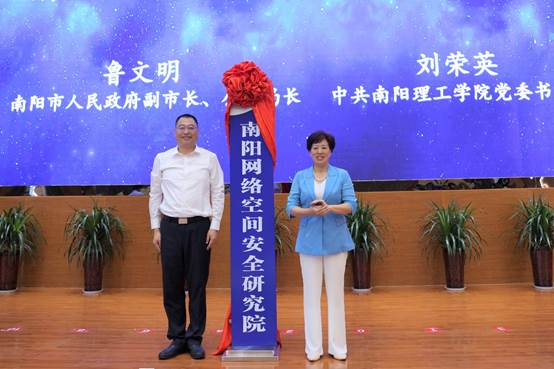 鲁文明、刘荣英共同为南阳网络空间安全研究院揭牌;
