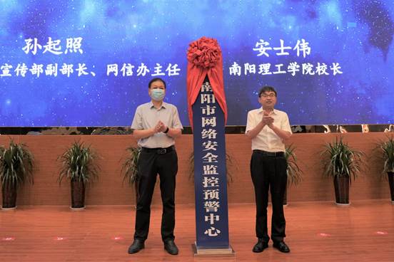 孙起照、安士伟共同为南阳市网络安全监控预警中心揭牌;