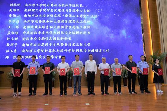 安士伟为南阳网络空间安全研究院院长、副院长,南阳市网络安全监控预警中心主任、副主任颁发聘书。