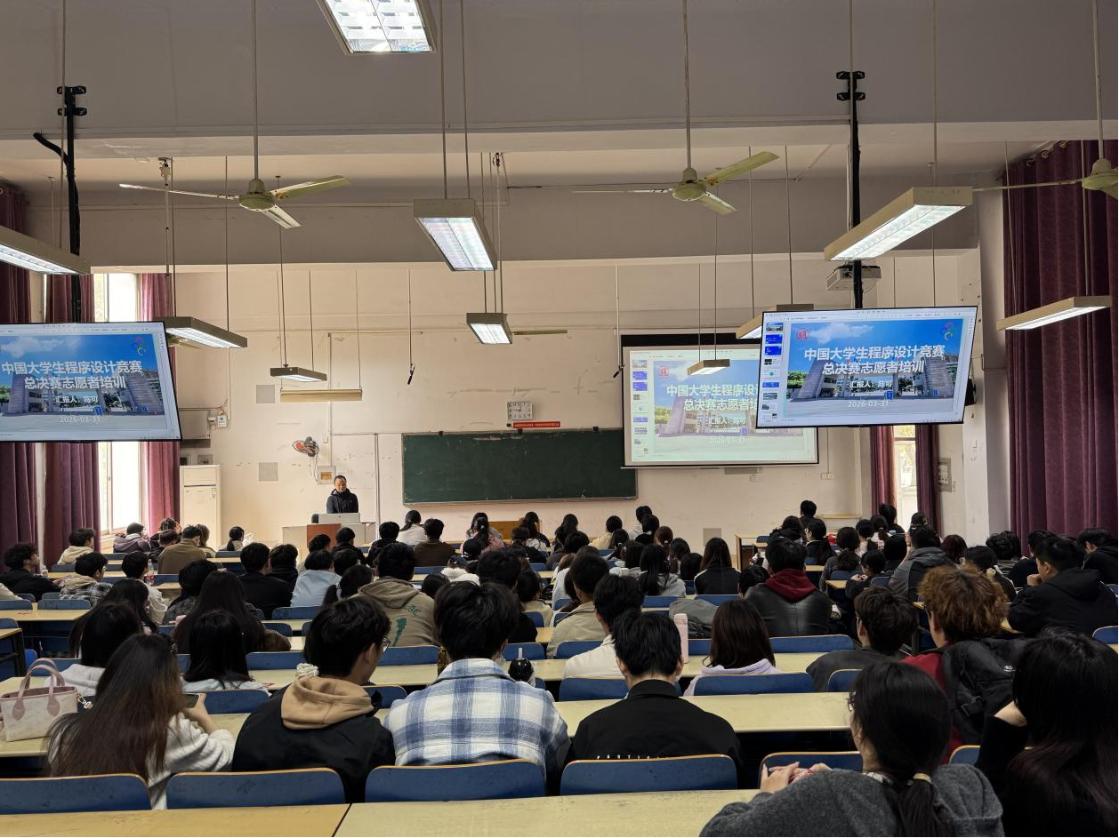 培训伊始,大赛组委会竞赛组负责人首先向志愿者们介绍了中国大学生程序设计竞赛的发展历程与重要意义。作为国内高校计算机领域最具影响力的赛事之一,大赛自2015年在我校成功举办以来,始终以“激发创新思维、培养实践能力、选拔优秀人才”为宗旨,吸引了全国上千所高校的数万名学子参与。